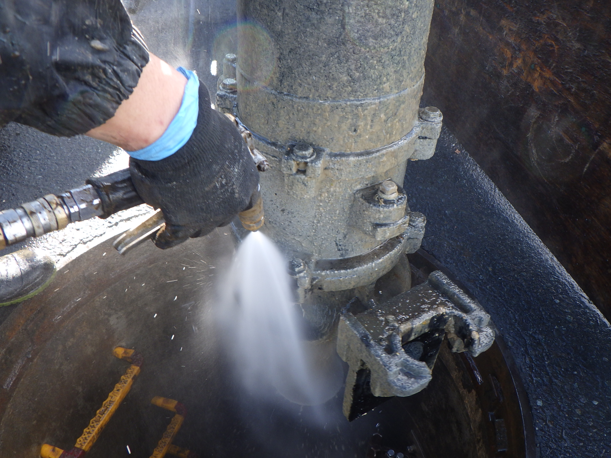 まずはポンプを引き上げて高圧ガンによる洗浄を行い、