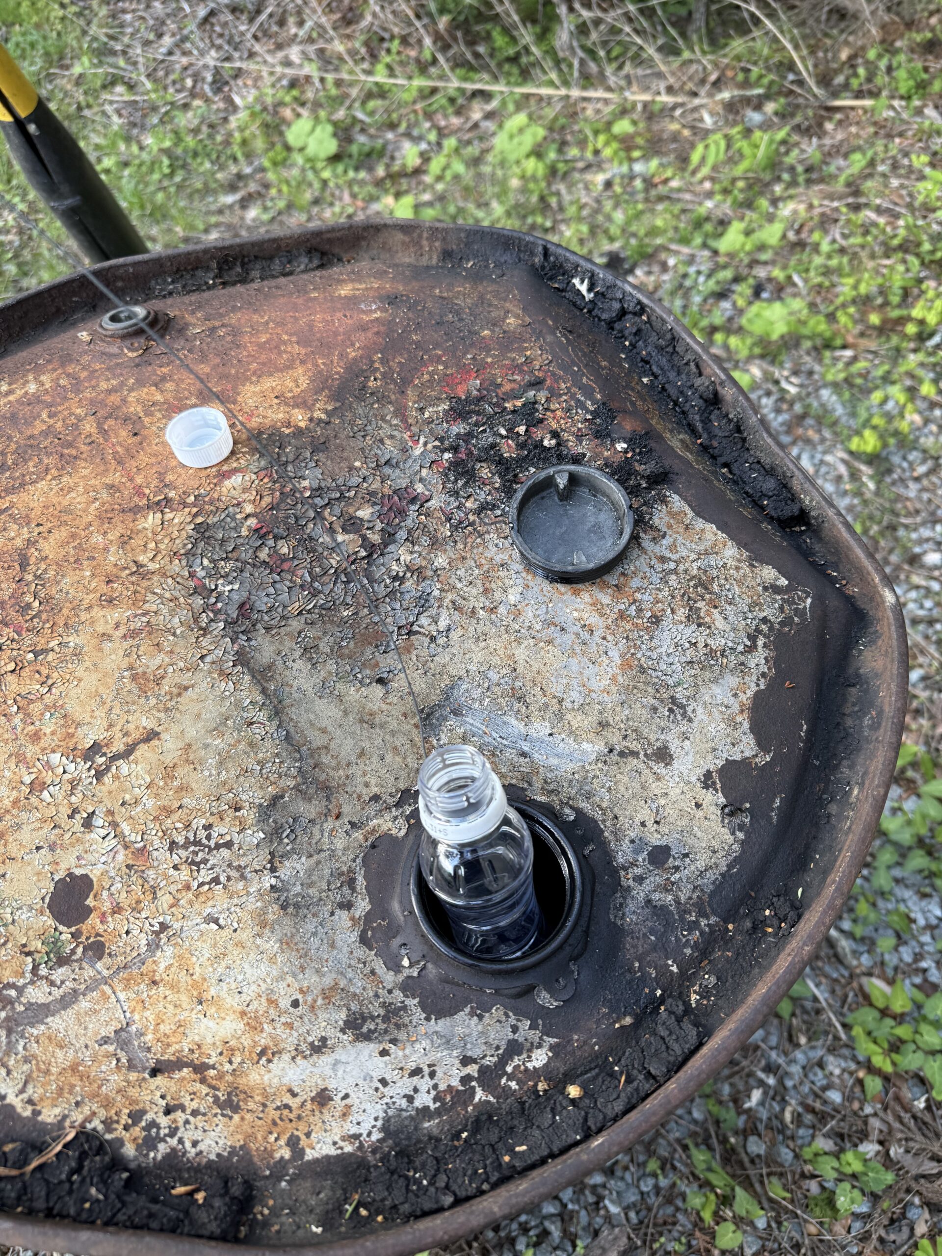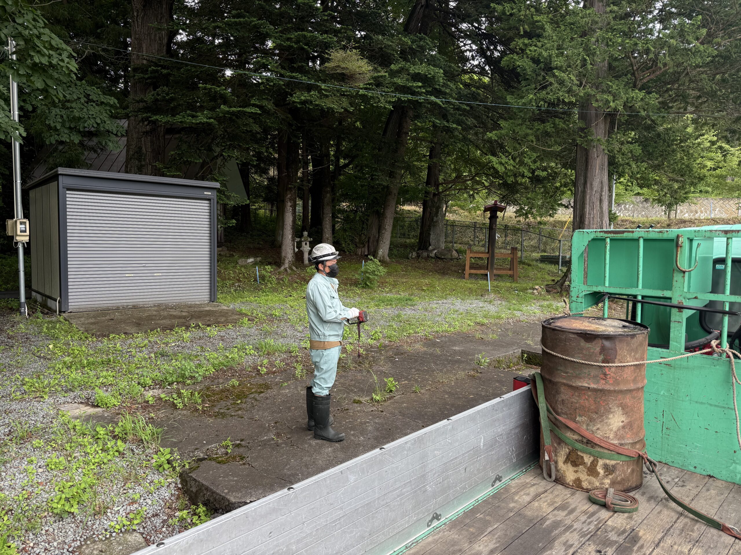 長年放置されたであろうドラム缶内に何が入っているか不明であり危険な為、まず中身を確認し安全が確認取れたところで収集を開始しました。