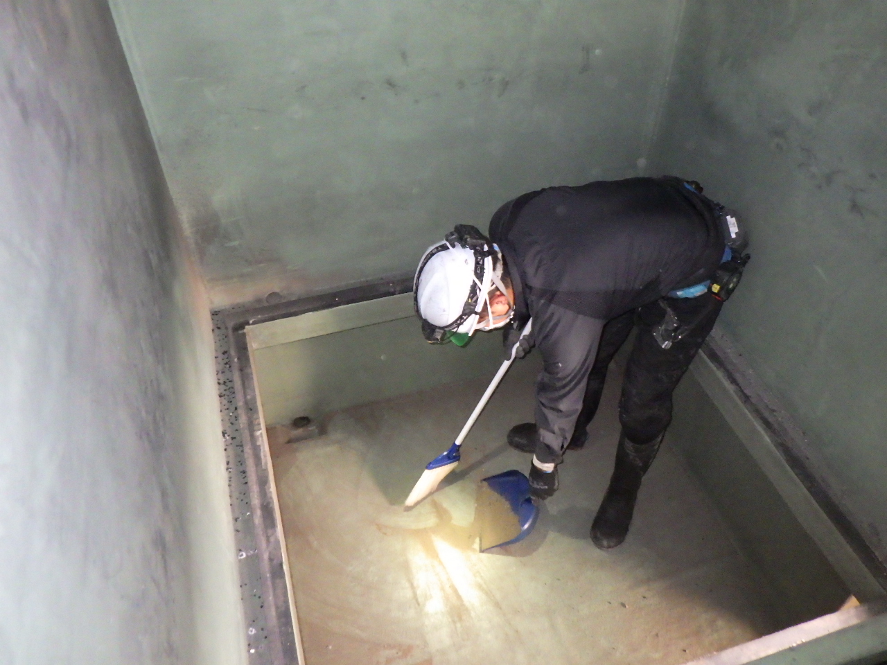 廃炭を吸引する際も、施設内を傷つけないようにホースを伸ばし吸引し、新炭の充填を行いました。