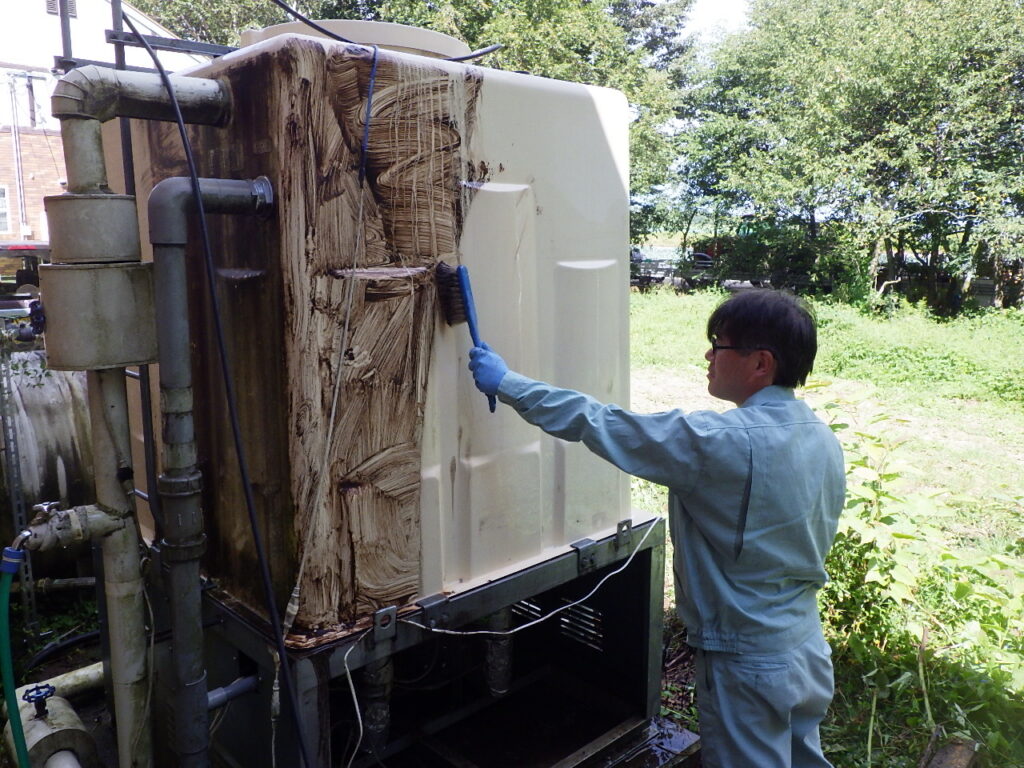 槽内の清掃は勿論、外面の清掃も行っていきます。