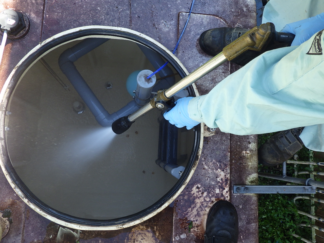 槽内の清掃は勿論、外面の清掃も行っていきます。