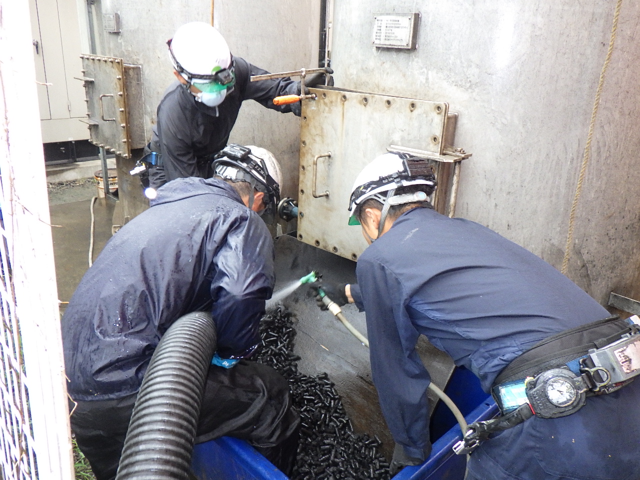 先日はご依頼いただいた発電施設にて、脱硫剤の交換作業に行ってきました。
