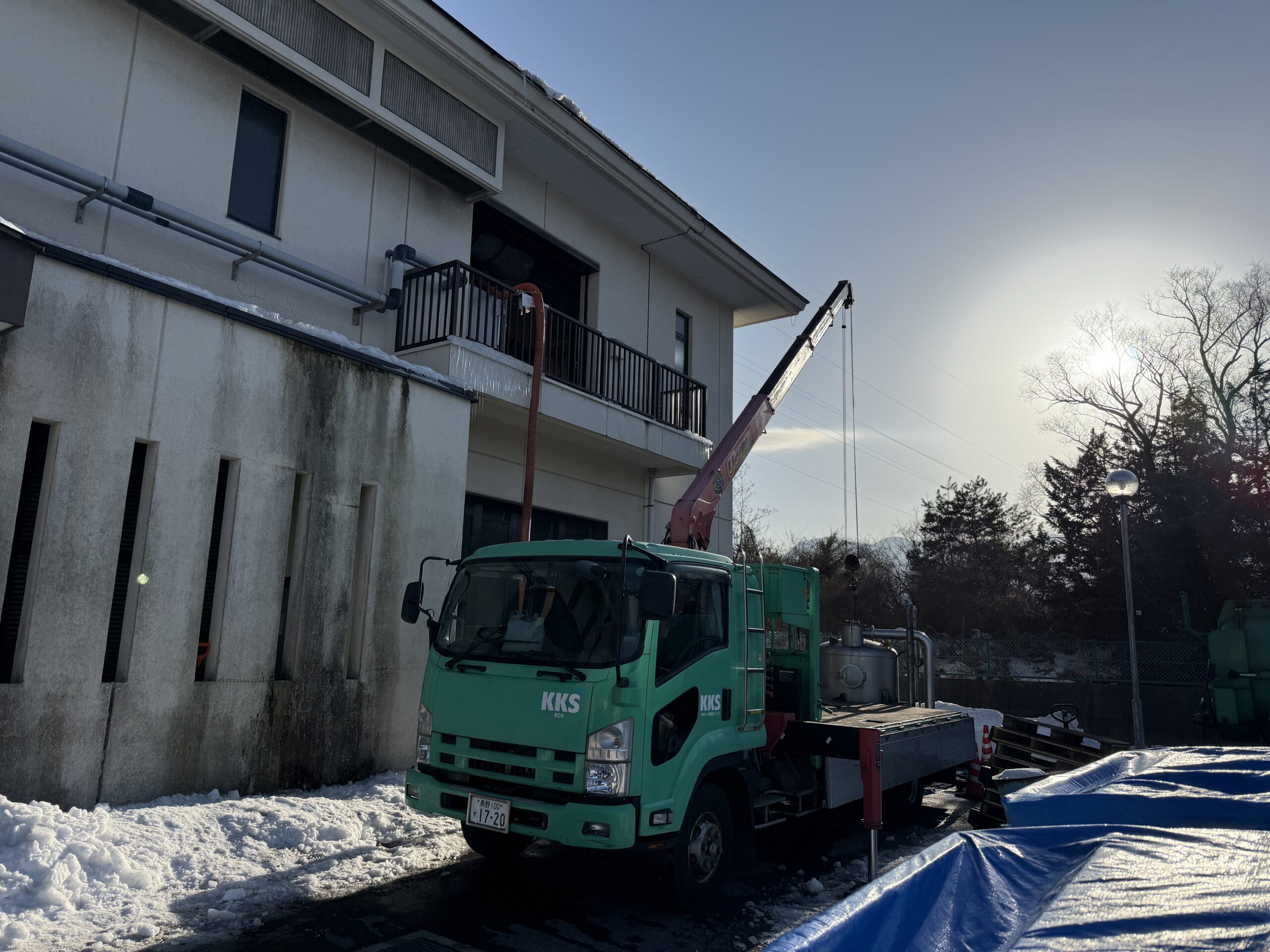 活性炭業務は屋外で行う作業も多い為、積雪は危険を招く弊害になりますが、社員が協力し無事に作業を終えられました。