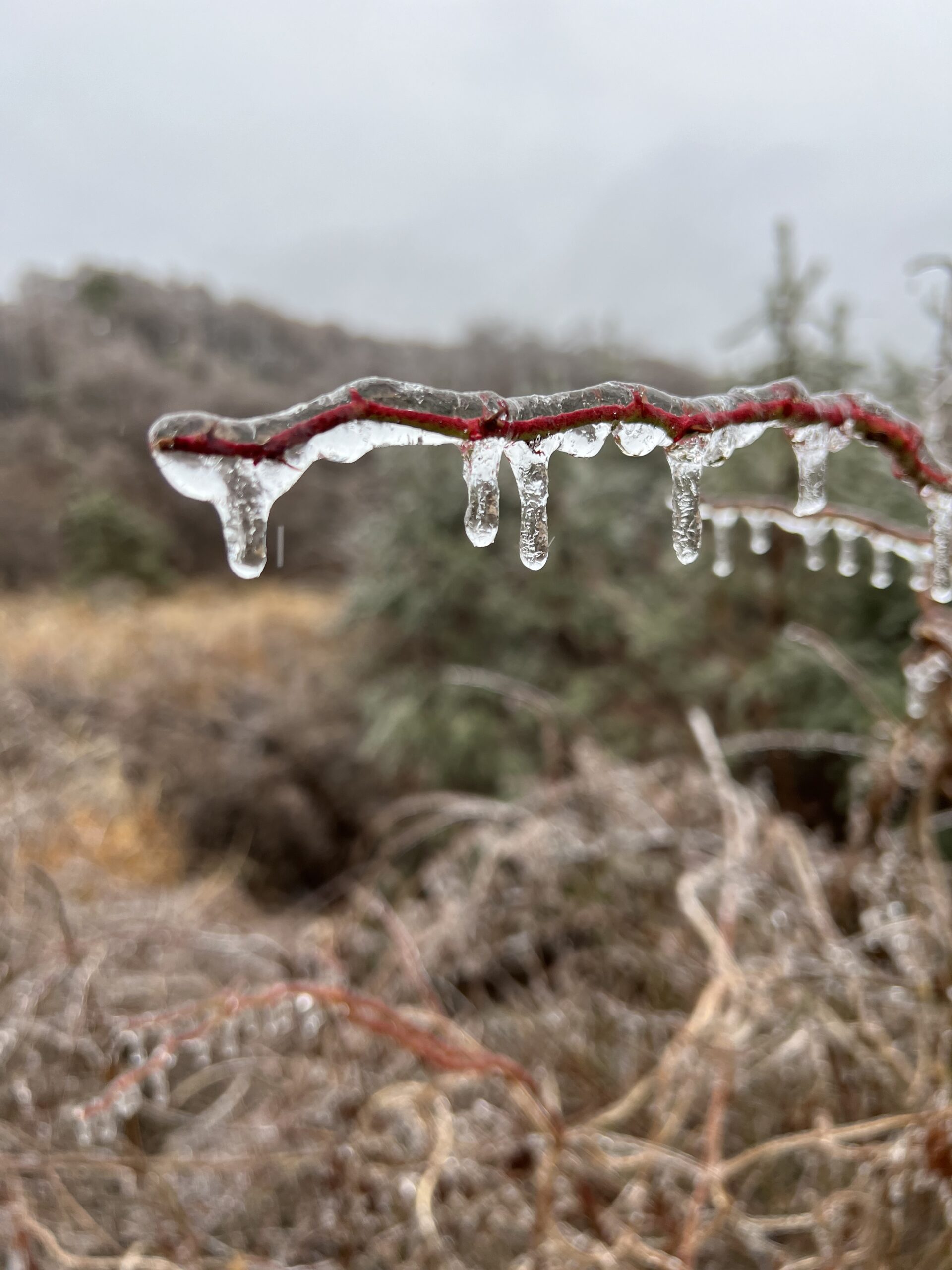 この時期に珍しい10℃越えの高気温で降った大雨が翌日凍り、雨氷が見れました。